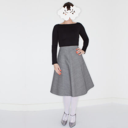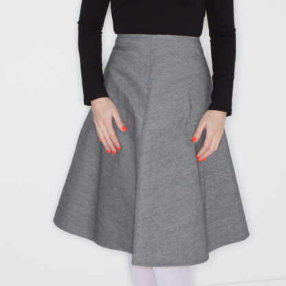 Grey denim a-line skirt.