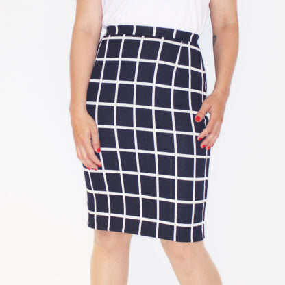 Navy pencil skirt with big grating pattern