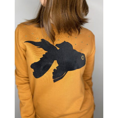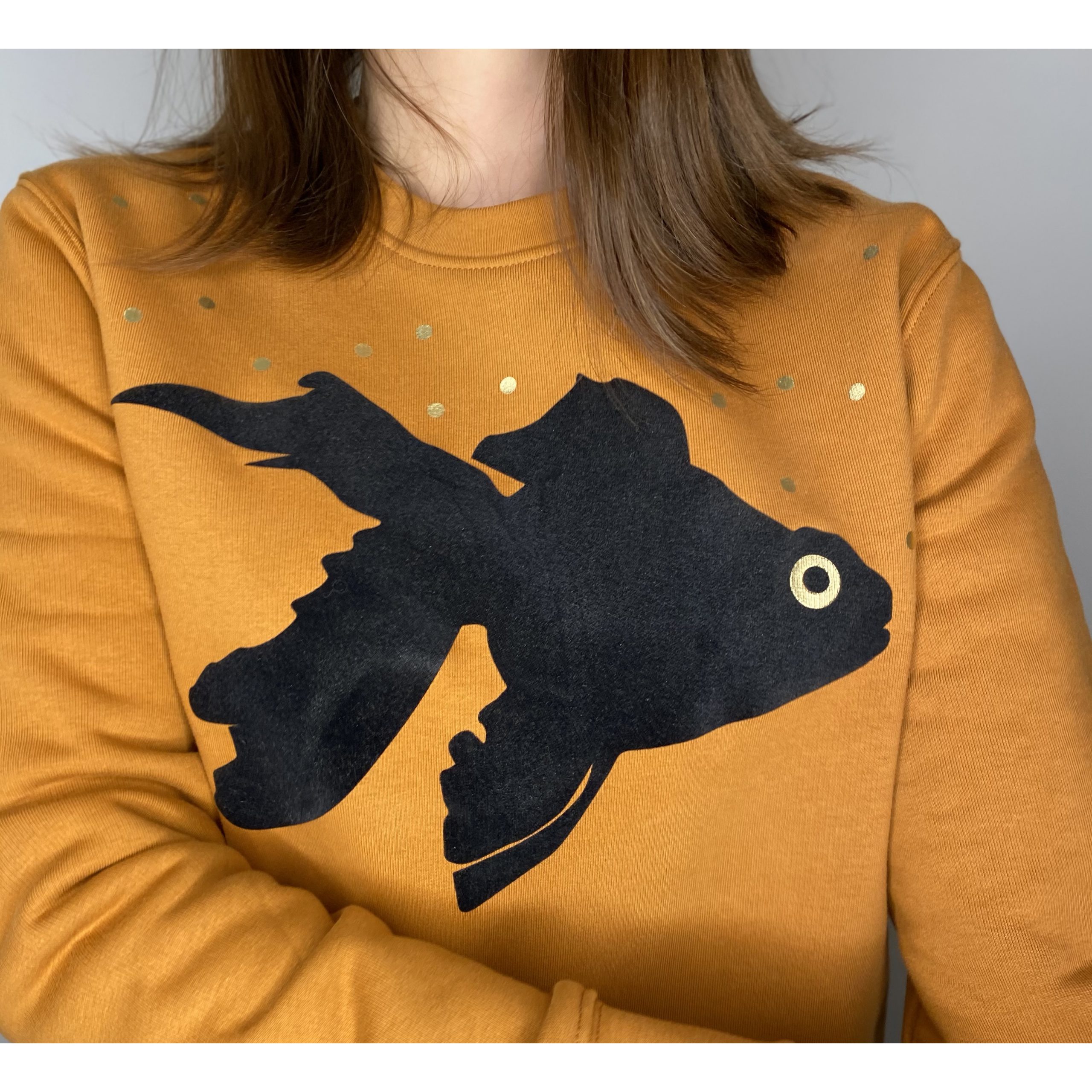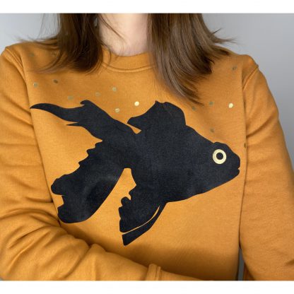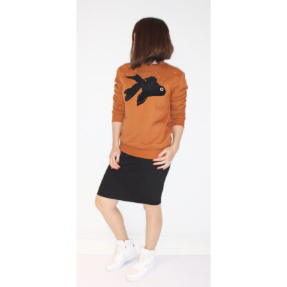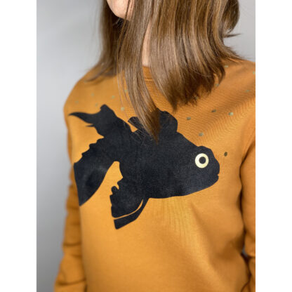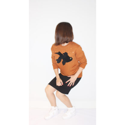 Big burnt orange organic cotton sweater with Alexander the fish.
