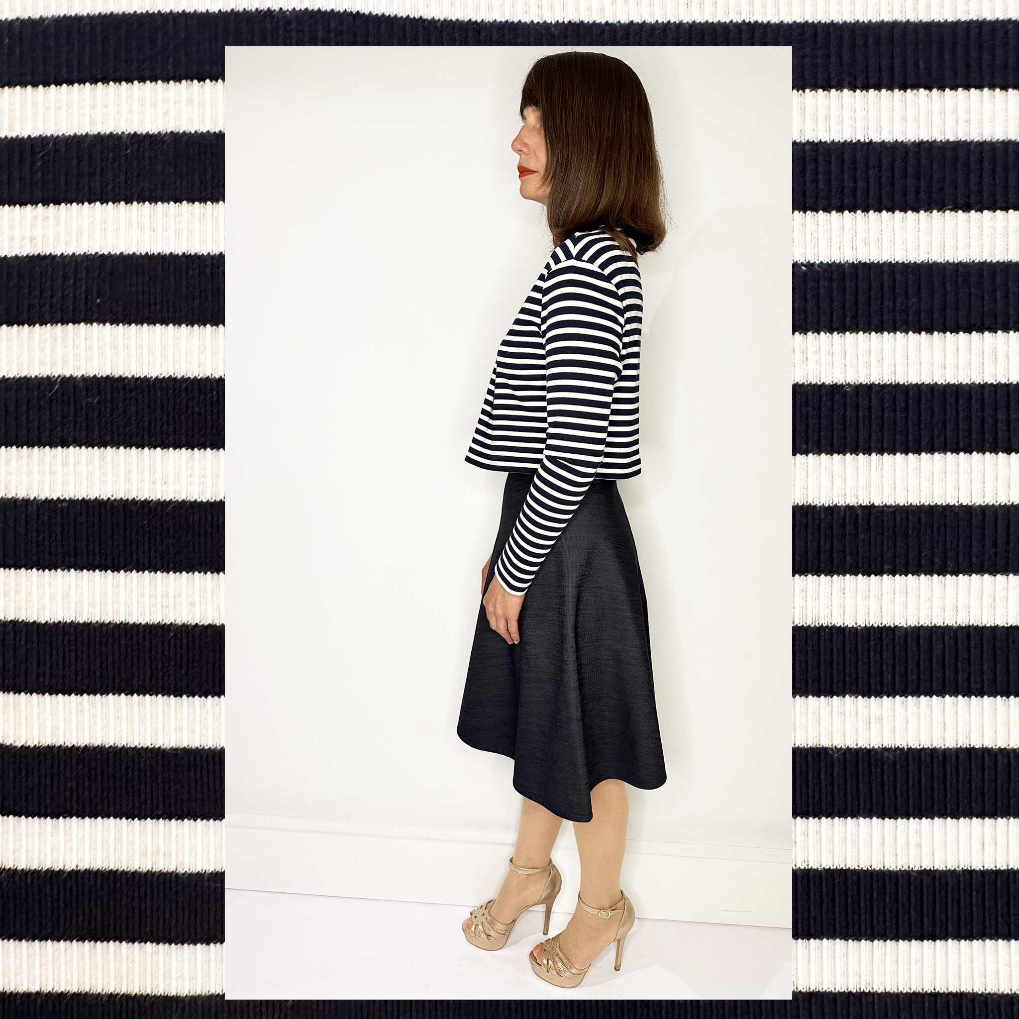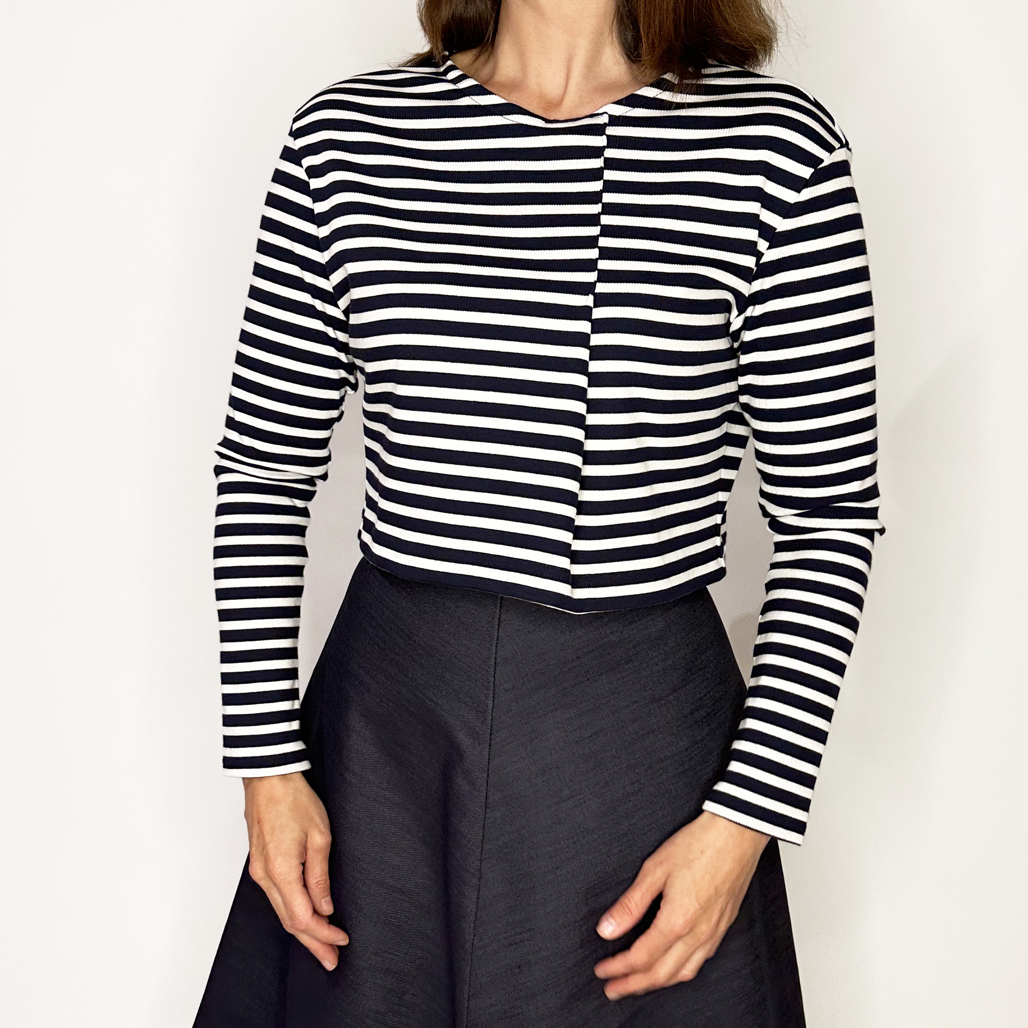 Experience timeless style with a modern twist in Studio Catta’s classic blue and white striped top.