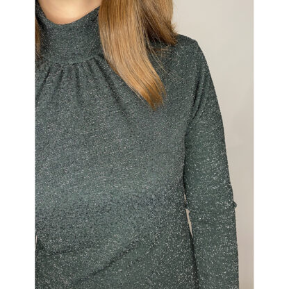 Tight fit. The fabric is a knit of 76% polyester, 18% mesh and 6% elastine.