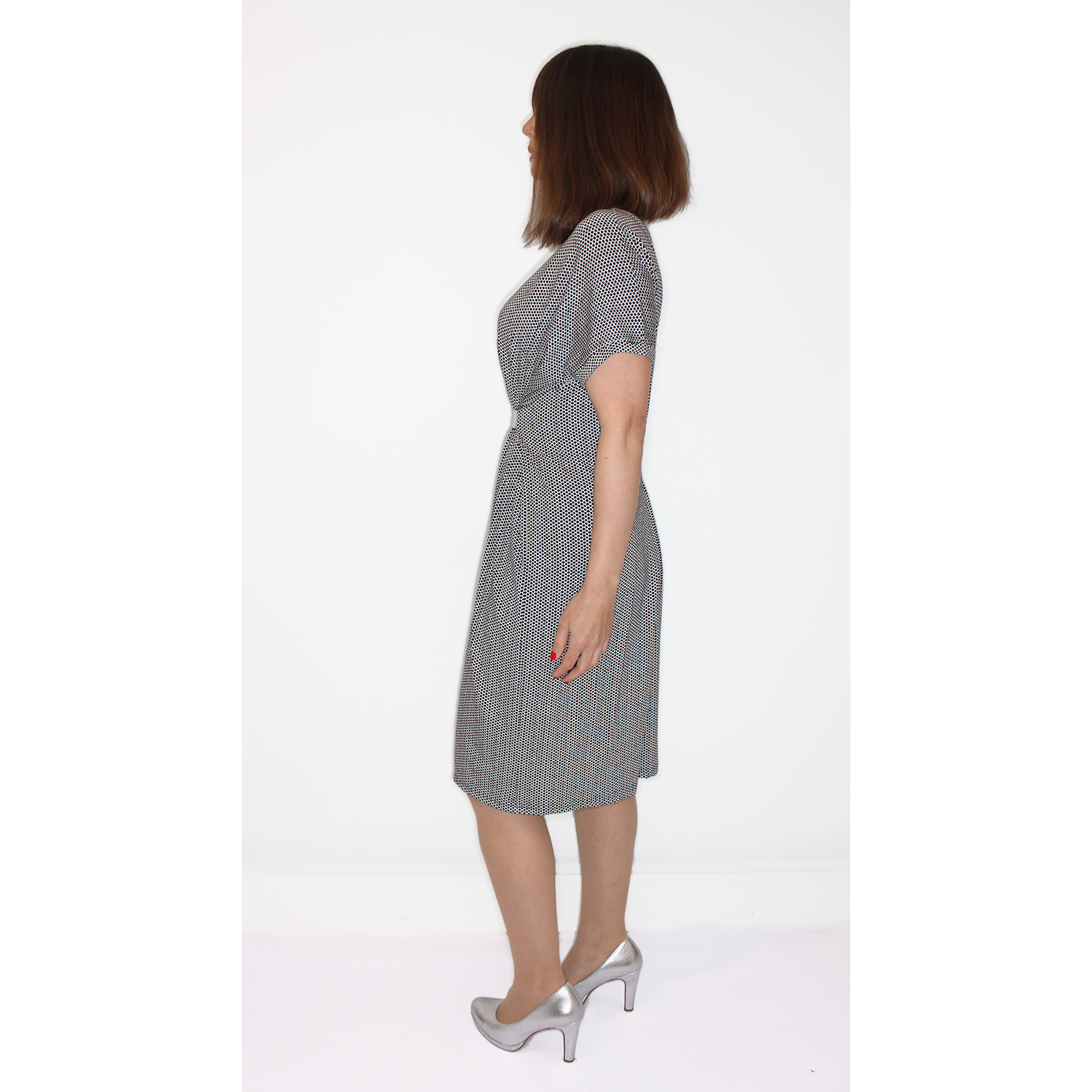dress. The backside is shaped by extra stitching in the middle of the back.