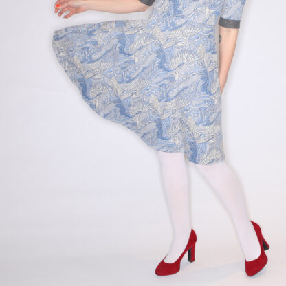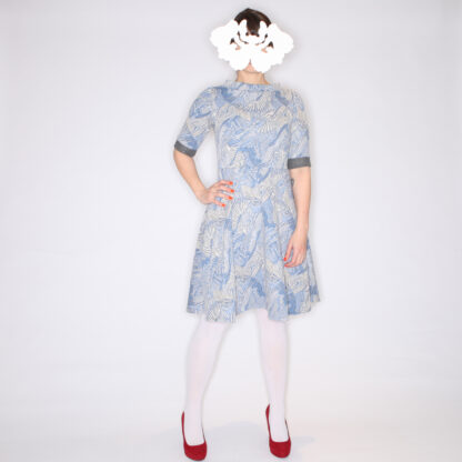 Fitted upper and circle skirt finished with biais tape.