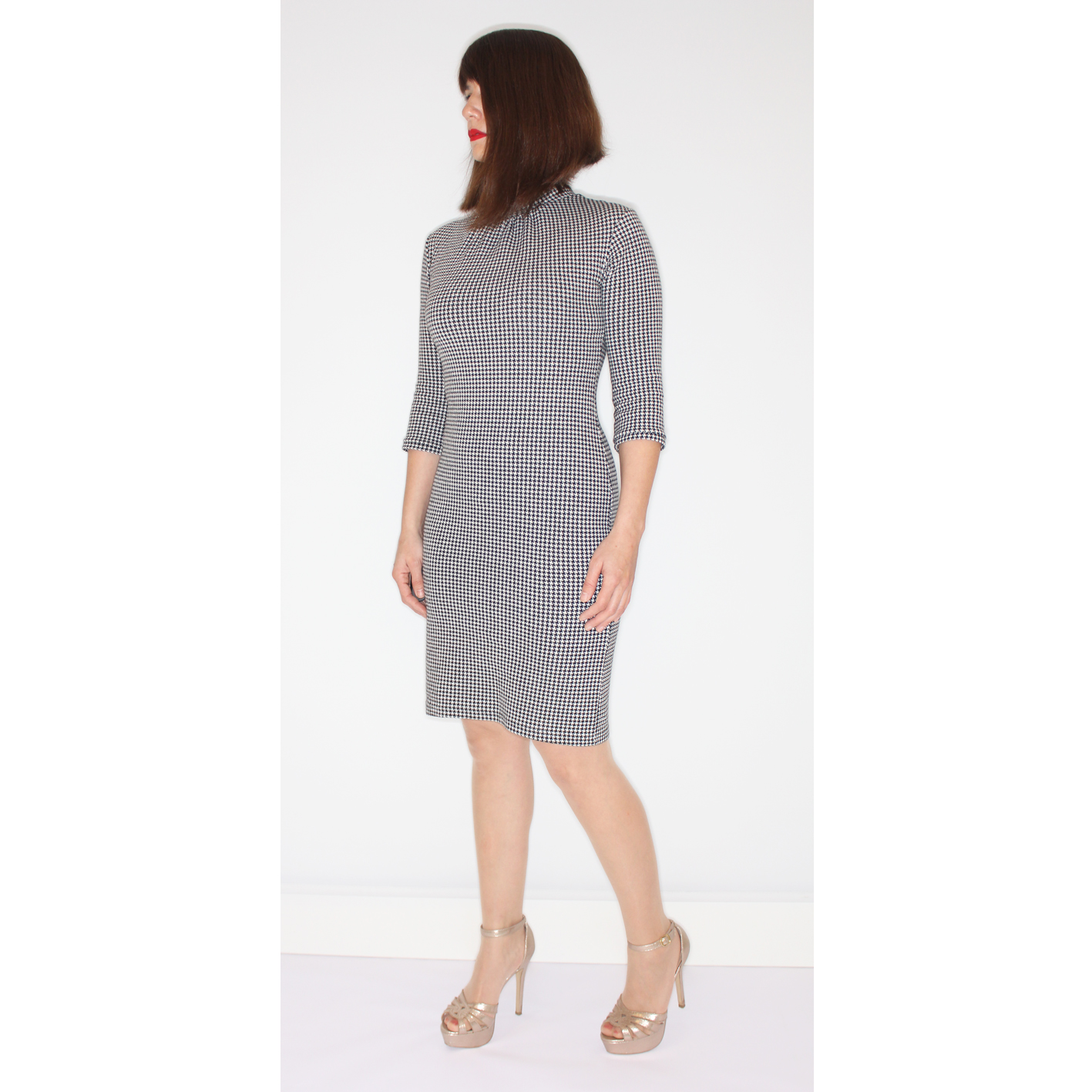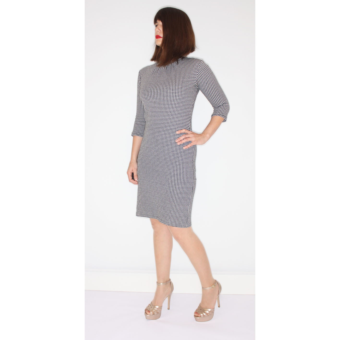 Pied-de-poule fitted dress of 85% RECYCLED yarns.